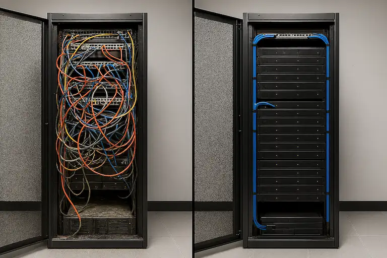 Un rack ordonat asigură acces rapid la echipamente, reduce riscurile de întrerupere, îmbunătățește fluxul de aer și prelungește durata de viață a componentelor.