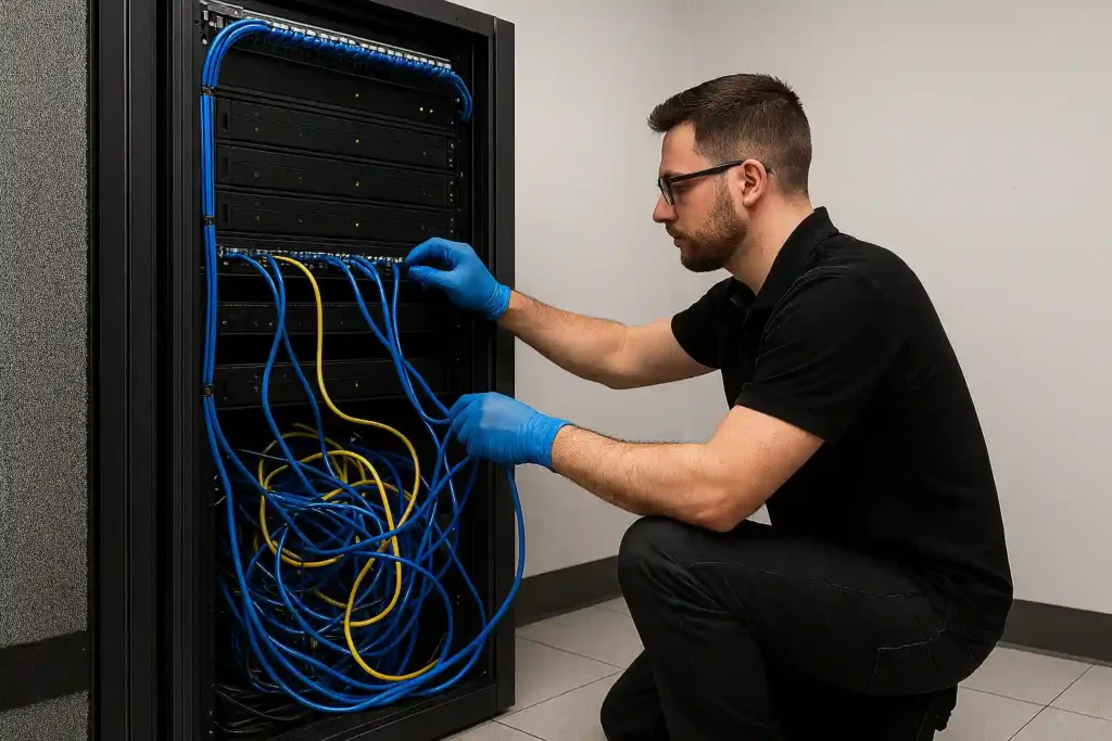Transformăm rack-ul tău într-un spațiu ordonat, sigur și ușor de administrat. Organizare profesională pentru cabluri, echipamente și alimentare.